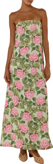 - Maxi length strapless dress