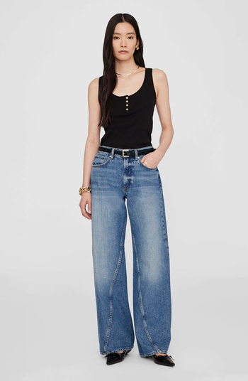 Elevate your basics with the Alessia Tank, featuring a modern Henley-inspired design and luxurious ribbed texture.