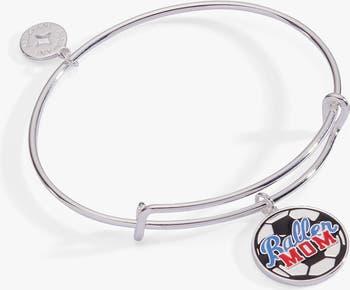 Celebrate the soccer mom who brings her A-game both on and off the field. This silver-plated expandable wire bangle features a vibrant enameled soccer ball charm paired with an empowering "Baller Mom" message. Perfect for Mother's Day, it's a spirited tribute to athletic moms everywhere. Adjustable fit makes it comfortable for all-day wear.