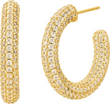 Your new go-to earrings for GNO, date night, or everyday glam. These gold hoops, adorned with sparkling crystals are designed to be your new staple accessory for any occasion.