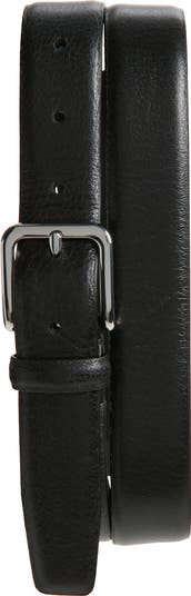 A clean and classic design brings versatility to a rich leather belt fastened with a polished square buckle that adjusts for comfortable wear.