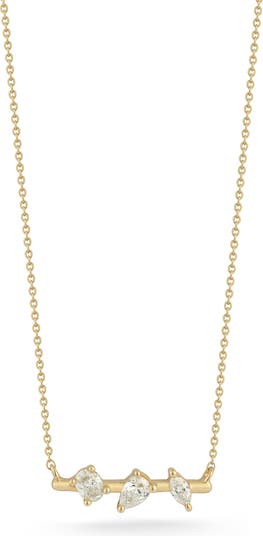 A mix of cuts brings sparkling variety to the diamonds on this bar pendant necklace crafted from 14-karat gold.