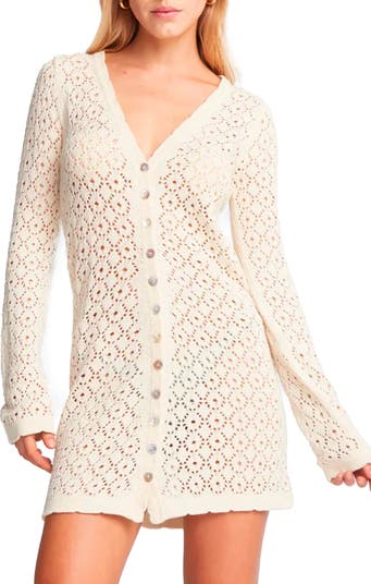 An airy open-stitch design adds breezy charm to this button-front minidress made from soft cotton and perfect for a post-pool look.