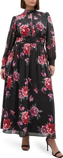 Rich blooms romance this enchanting maxi framed by billowed sleeves and finished with back waistline smocking to shape the silhouette.