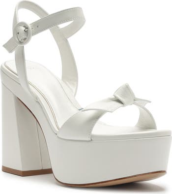 Let Alexandre Birman help celebrate your happily ever after with this quarter-strap sandal that combines bridal elegance with a hint of retro whimsy. The label's iconic Clarita bow tops the toe, while the sculptural block heel and platform literally elevate your Big Day style.