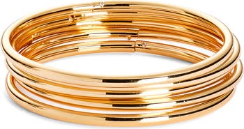 Whether you wear them singly or stacked, these hinged bangles with a high-shine finish bring noteworthy shine to your wrist.