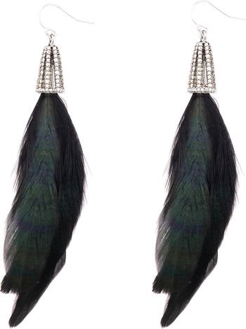 Crystal accents highlight the airy movement of these scene-stealing feather earrings.