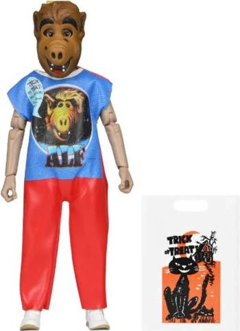 Alf (Ben Cooper Costume Kid) NECA 6 Inch Scale Clothed Action Figure. The Ben Cooper Costume Kids Collection is here, featuring a lineup of trick-or-treaters inspired by iconic 80s pop culture! These fully poseable 6-inch figures are based on the licensed kids costumes from one of the largest Halloween costume manufacturers from the 1950s-80s. Each costumed action figure wears a mask and soft goods clothing replicating the signature vinyl look of the vintage costumes and includes a trick-or-treat bag accessory. Every figure is sold separately and packaged in a numbered, retro-style window box that pays homage to the classic costume packaging.