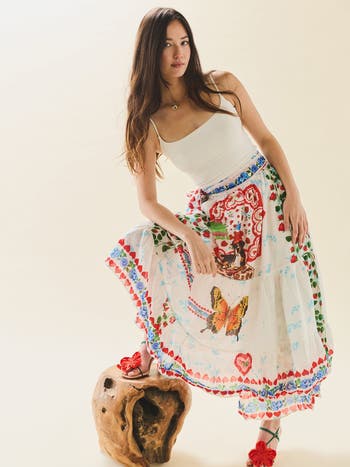 Meet the Wrap Skirt, a versatile and whimsical staple that offers an artful approach to everyday dressing. Designed to be incredibly adjustable, this piece comes in just two sizes thanks to its flexible wrap-around construction and secure side tie that ensures a personalized, comfortable fit. The silhouette serves as a breezy canvas for the conversation print, florals, butterflies, and bandana motifs, and an added wink of Southern sass.