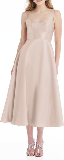 A flowy skirt shows off the glossy luster of this party-perfect satin dress, hung from slender straps.