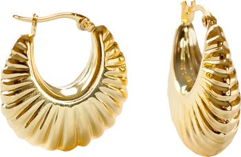 Scalloped hoop earrings are polished to a high shine for a glow that goes with anything.