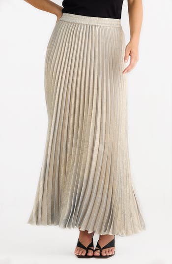 Accordion pleats add eye-catching dimension to a shimmery maxi skirt that's sure to elevate any look.
