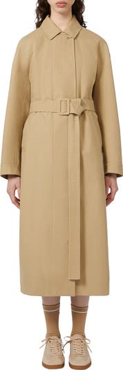 Clean lines define a cotton-forward jacket cinched with a matched belt.
