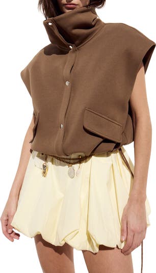 Drawcord sides shape the silhouette of this soft cotton-blend vest framed by a high neckline and drapey dolman sleeves.
