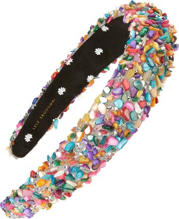 Secure your tresses in this puffy headband designed with lustrous crystals and colorful beads.
