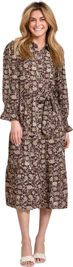 Sophisticated yet effortless, this midi dress is crafted in a lightweight woven fabric. Featuring a collared split neckline, long sleeves with smocked cuffs, and a removable self-tie belt, it offers a flattering fit that’s easy to style. The tiered skirt adds movement, making it a versatile piece for both everyday wear and special occasions.