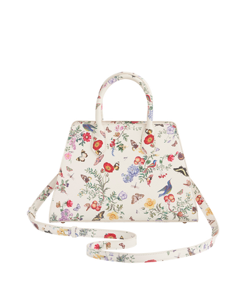 You'll look as if you've walked straight out of Wonderland with this vegan leather tote bag. Featuring our hero Alice's Garden print, every inch of this spacious bag is covered in colourful birds, insects and flowers. This mesmerising piece is finished with gold-toned brassware and our signature Fable bee plaque.