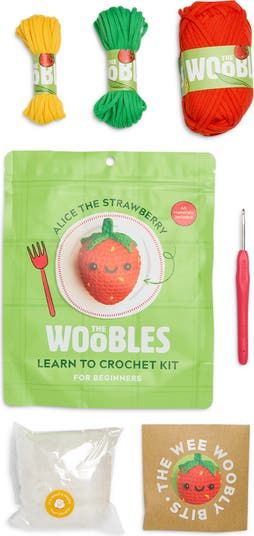 Custom-made for beginners and pre-started for convenience, this activity set teaches you or your budding artisan how to crochet a tiny figurine of Alice the Strawberry.