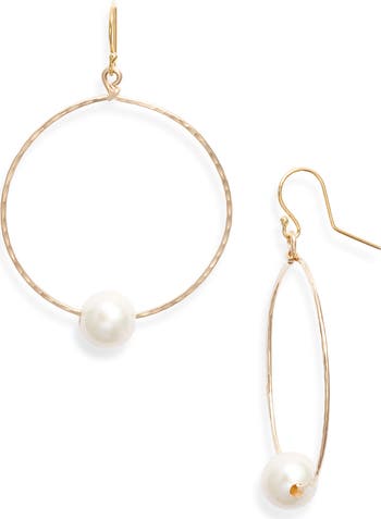 Alii Large Freshwater Pearl Hammered Hoop Earrings