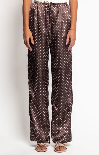 Cut from glossy skin-skimming satin, these comfy tie-waist pants are covered in celebratory dots and finished with flowy wide legs.