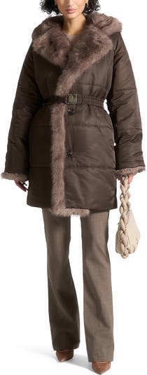 Stay warm in style with this longline puffer coat, designed for full coverage and effortless winter dressing. Plush faux fur trims bring added warmth and a soft, elevated finish, while the detachable branded Eiffel belt allows for versatile styling and a defined silhouette.