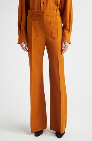 Drawing on 1970s style references, these structured pants have a superhigh waist and flared leg for a well-proportioned silhouette.They're tailored from a lightweight blend with a substantial amount of wool and an element of stretch for easy wear. Front and back patch pockets complete the look.