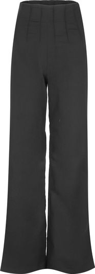 High-waisted wide-leg pants with vertical seam detailing along the waistband. Features a clean, structured fit with a slight flare for a polished, elongated silhouette