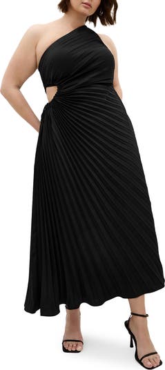 Accordion pleats and a flirty side cutout amplify the modern appeal of this asymmetric A-line dress that's ready for your next occasion.