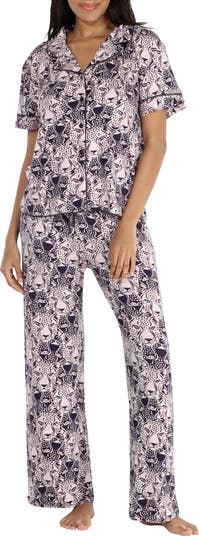 Bring a little extra luxury to your nighttime routine with these cozy PJs featuring a button-up top with short sleeves and matching pants.
