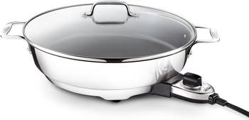 A dishwasher-safe nonstick electric skillet is made with bonded metal construction for even heat distribution and adjusts all the way from 'warm' to 'sear.'