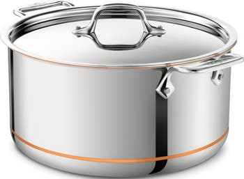 In a genius move that cooks applaud, a thoughtfully designed stockpot combines the culinary performance of copper with the cleaning ease of stainless steel. This stockpot features high sides that slow the evaporation of liquids. Generously large and deep, the piece can be used for braising, stewing, browning and slow cooking, all in the same vessel, making it an excellent choice for one-pot meals. The lid can be used either in the oven or on the stovetop and can be removed to finish cooking. Designed for professional use, Copper Core features five-ply construction with a copper center, which transfers heat and spreads it quickly, evenly and precisely throughout the cookware, all the way to the rim.