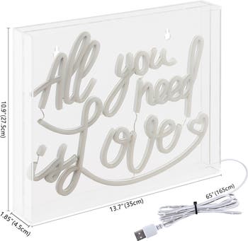Bright neon makes a whimsical addition to your bookshelf or gallery wall. Take the vintage route and hang our All You Need Is Love neon sign in your space because it's really all you need to passively send a message of love. Convenient, low-voltage USB power is perfect for a bedroom or dorm room.