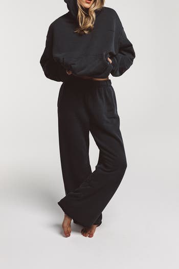 Mid-rise slightly oversized fit. Sport meets sophistication. Your perfectly polished everyday pant crafted from luxury-grade Supima cotton terry. A vintage-inspired straight leg that moves seamlessly from morning workout to meetings to dinner plans. The rare blend of athletic heritage and modern refinement, enzyme-washed for the kind of softness that makes these an MVP in your daily wardrobe. Model is 5ft 7in and a size 24" and is wearing an XS.