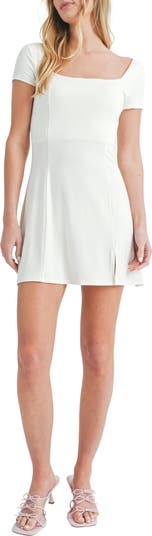 Effortless sophistication is the name of the game with this slip-on minidress featuring a square neckline and subtle side slit.