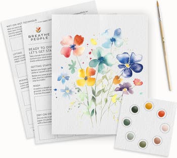 - Everything you need to create your first (or 100th) watercolor masterpiece. -1 8x10" watercolor design outline -2 pages of practice sheets -1 paintbrush -1 paint palette