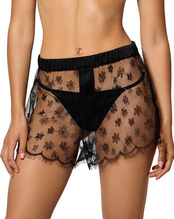 Made from airy, feather-light floral lace that's been hand finished, these sheer boxers feature a black silk chiffon waistband.