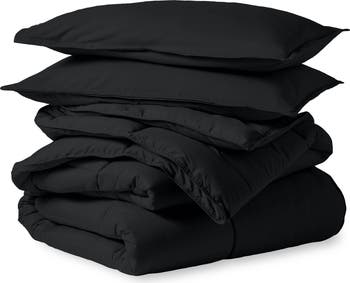 An easy update for any bedroom, this comforter set from Bare Home is crafted from soft double-brushed microfiber with plush down-alternative fill. Lightweight, soft and breathable, it provides comfortable warmth for year-round use. Matching pillow shams complete the look for a simple, coordinated bedding set. This listing is for the Oversized King size. Other sizes are available separately.