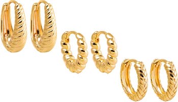 Adina Eden’s All The Solids Huggie Earring Combo Set is a bold and timeless collection, crafted from brass and plated in 18K gold. Featuring a uniform 5mm thickness and a 10mm huggie size, this set includes a variety of solid, sleek designs that are perfect for layering or wearing alone. With a modern and minimalist appeal, these huggies provide a versatile, stylish addition to any jewelry collection, offering both comfort and elegance with every wear.