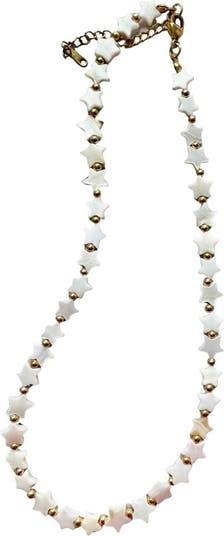 A necklace that feels like a constellation you can wear. Each tiny mother-of-pearl star glows softly with iridescent light, separated by golden beads that catch the sun just right. The natural shimmer of the shell gives it a dreamy, celestial feel — perfect for layering or standing out on its own. It’s equal parts whimsical and timeless, a little reminder to look up and keep wishing.