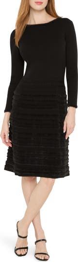 Textured and dimensional, this cotton-blend sweater-dress is made with a ribbed bodice and a contrasting skirt knit with rows of supersoft chenille yarn.