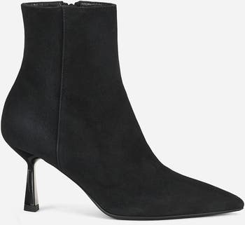 Ankle boot in velour with a slightly tapered toe. The snug, glove-like fit, made easier by the side zip, ensures stable and extremely comfortable wear.