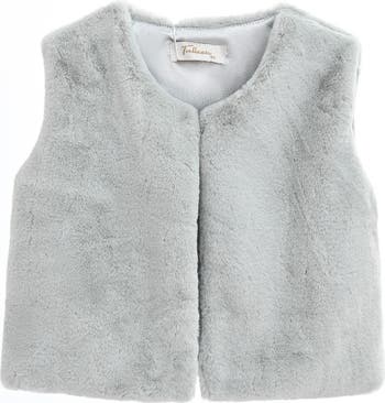 A cozy, sleeveless vest in soft faux‑fur that offers a sleek, minimalist shape with a rounded neckline and clean front for layering warmth without bulk. The simple silhouette makes it versatile for both casual and dressier children's outfits.