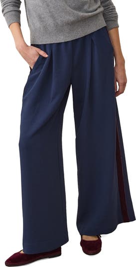 A soft velvet stripe runs down the sides of these pull-on pants that easily take you from work to play with an on-trend wide-leg silhouette.