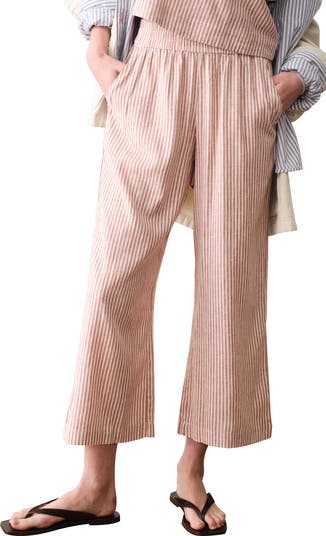 Allison Stripe Pull-On Crop Wide Leg Hemp Blend Pants