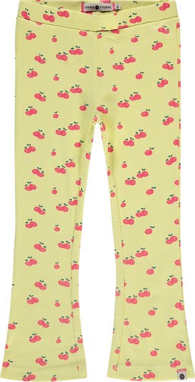 This ribbed yellow-toned flare leggings features an adorable allover cherry graphic.