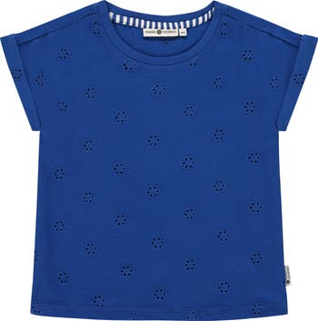 This short sleeve t-shirt features allover eyelet flower detailing.