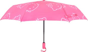 Stay dry in the cutest way possible with this officially licensed Hello Kitty umbrella! Featuring an allover white Hello Kitty head print on vibrant pink, this compact umbrella brings style and functionality wherever you go. Cute, convenient, and weather-ready—this umbrella is your rainy day essential!