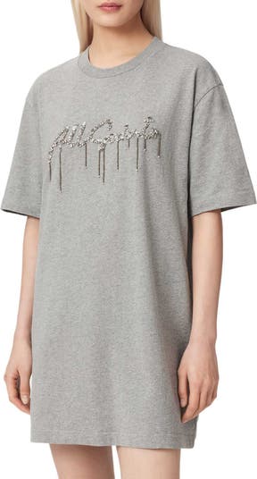 Shimmering crystals highlight the logo script of this cotton-jersey T-shirt dress that's destined to be an off-duty favorite.
