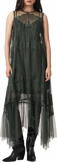 Clara Sheer Lace Sleeveless Handkerchief Hem Dress