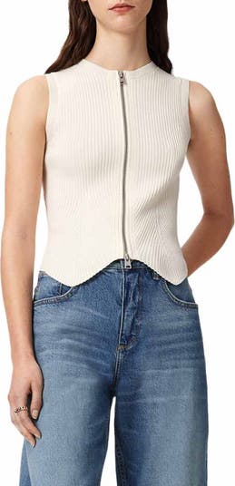 A ribbed knit brings a body-skimming fit to this sweater vest finished with a versatile two-way zip for easy layering.
